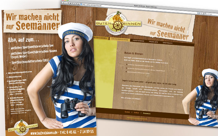 Buten & Binnen – Segel- und Motorbootschule Logoentwicklung Geschäftsausstattung Flyer, Plakate und Internet ← zurück weiter →
